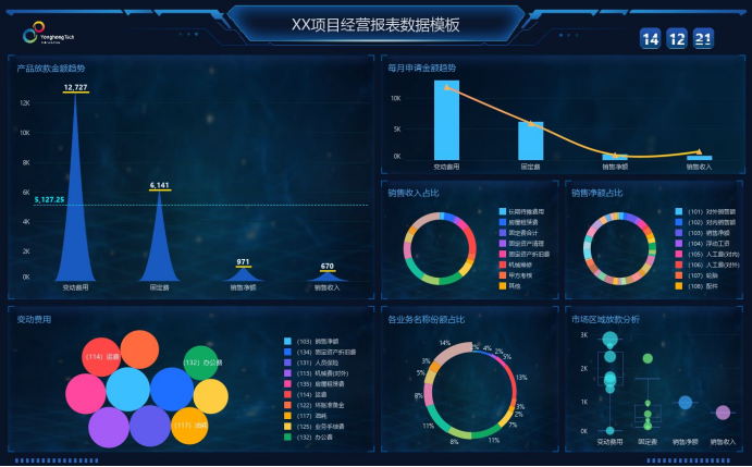 在色彩搭配上,建议使用一致的色系,并利用颜色的深浅明暗来体现数据层级或重要性差异。同时,要合理运用动画效果来增强动态数据的表现力,但切忌过度使用以免分散注意力。永洪的数据可视化工具提供了丰富的主题模板和样式配置选项,能帮助用户快速统一整体风格,塑造出专业、美观且重点突出的数据大屏,让数据故事讲述得更加有力。