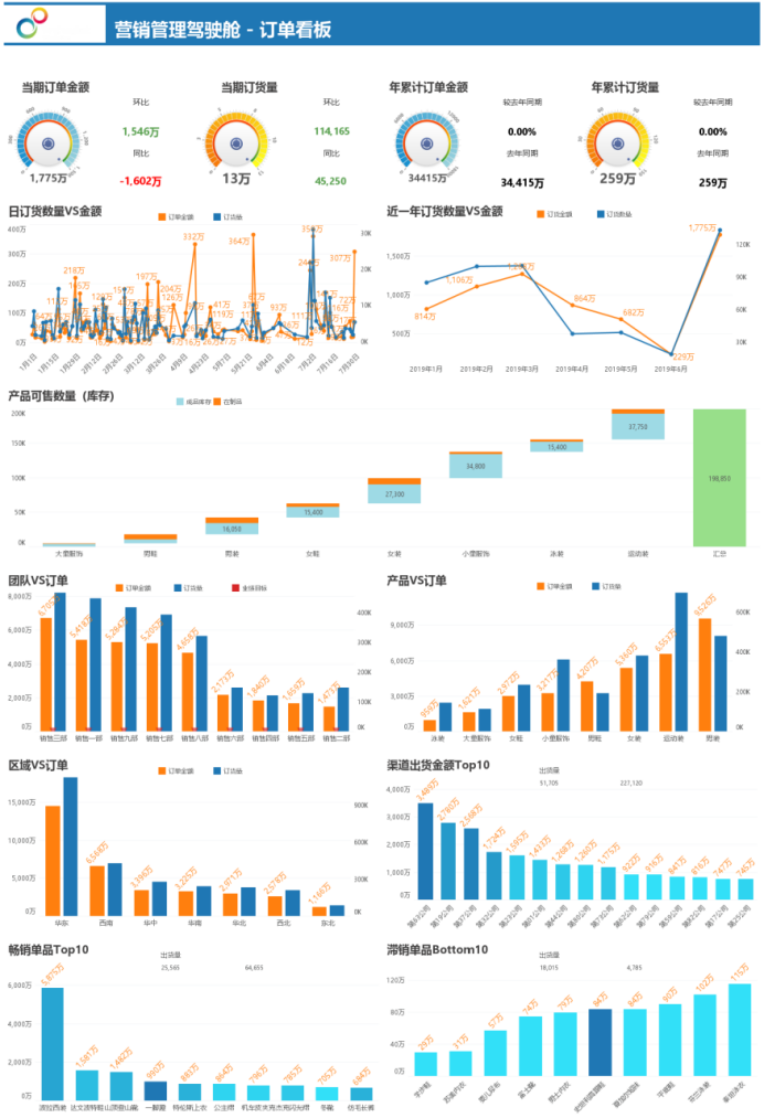 另一方面,库存管理是电商的“生命线”,也是永洪方案的强项。面对多平台、多仓库的库存数据,运营人员可以借助工具实现全维度库存监控。永洪的一站式数据分析平台能够实时追踪在仓与在途库存,并结合销售预测自动生成补货建议-2-3。这种从“被动应对”到“主动预判”的转变,不仅能避免缺货造成的销售损失,还能有效减少滞销品对资金的占用,让店铺运营进入良性循环。