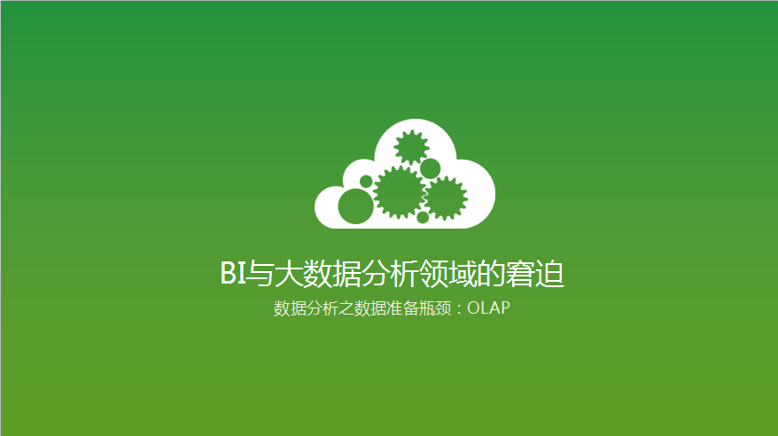 1.第一个困惑:BI与大数据分析领域的窘迫。我们认为在数据准备领域,OLAP的瓶颈一直没有完美的解决好。在现在很多的企业业务中,当他们希望用数据分析优化业务时,他们还是需要找到一个IT部门帮助他们做数据准备工作。这个数据准备工作往往是要构建长时间的、非常大的OLAP来做。数据准备工作完成以后,一方面是时间长,另一方面是没有办法应对两遍。这是目前桎梏我们数据业务分析发展的非常重要的一个定位,也是我们一直在努力的方向。
