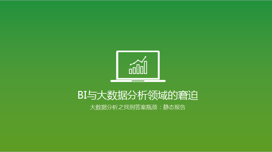 2.在BI与大数据分析领域的第二个窘迫,就是我们觉得在目前我们还没有帮到很多的企业、政府机构。大家依旧在拿着90年代、2000年的办法在做数据分析、做静态报告。业务人员等了很长时间,最后IT部门帮助他们出了一张张的静态报告。我们知道数据分析是一个闭环,这个闭环是什么?要从发生问题开始,要试着找到答案,把答案找来之后,我们要采取措施。而静态报告给我们带来了一个很大的阻碍是,我们发现了这个报告的问题之后,没有办法深入的继续向下找到答案。大家都是数据分析行业的专家,我们知道,要找到答案时,往往要问更多的问题,问第二个问题,再去回答,问第三个问题,再去回答,直到我们把这些问题问清楚之后才找到了最终我们的业务优化的症结所在。所以这是一个探索式的过程,我们要不断的对数据进行分析、转换、过滤、交互。那么在目前,80%以上的数据分析系统是没办法完成这样一个功能的,这也是困扰着我们的一个非常大的窘迫。
