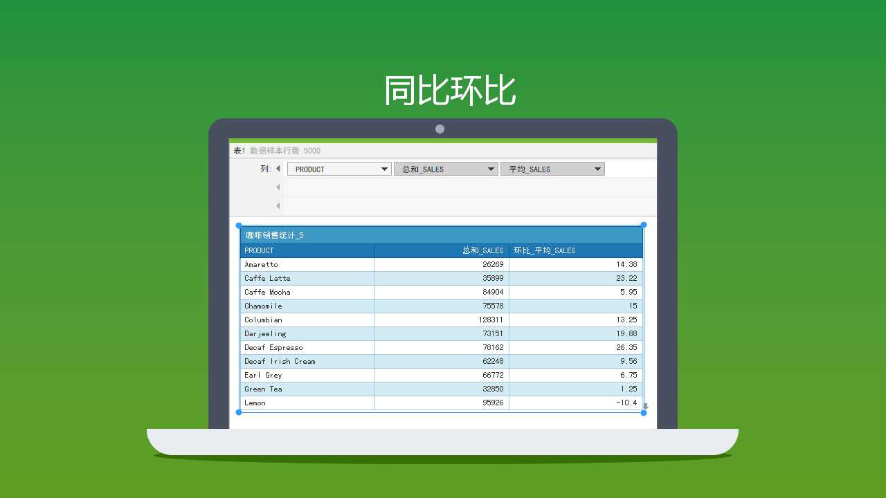 同比环比这个功能是BI软件最基本的需求,为什么我还要拿出来说呢?过去我们基于传统软件做此类复杂计算时,一般需要IT人员根据业务人员的需求,提前在语义层或者Cube层上将所需数据进行计算,业务人员再根据做好的数据进行分析,如果业务人员需要调整分析策略,还需要通过IT人员进行数据的预处理。现在,在V6.1中我们可以做的更简单,无需IT人员进行复杂的数据预处理,业务人员通过直接拖拽、绑定明细数据、选择计算方法等设置,即可对数据进行同比环比计算。此类的高级计算我们还支持很多,比如累计计算、排名计算等等。