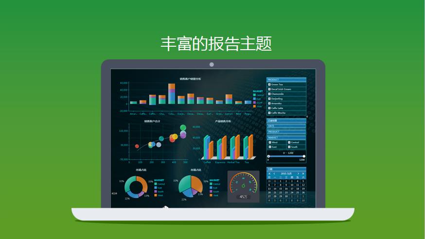我们的主题功能,可以让用户的报告快速实现艺术大师般的作品展现。如果用户有更多灵感与创意,也可以按照自己的设计来规划分析报告。在V6.0中,我们提供了多套不同风格的主题,每一套主题都经过细致的设计与打磨,为用户提供最具格调的配色、字体和样式展现,同时我们还提供了有趣的图表交互动画,为用户在查看报告时增加更多惊喜。通过选择应用这些不同风格的主题,用户可以快速实现最具个性化的分析报告,尽情展示个性情怀。