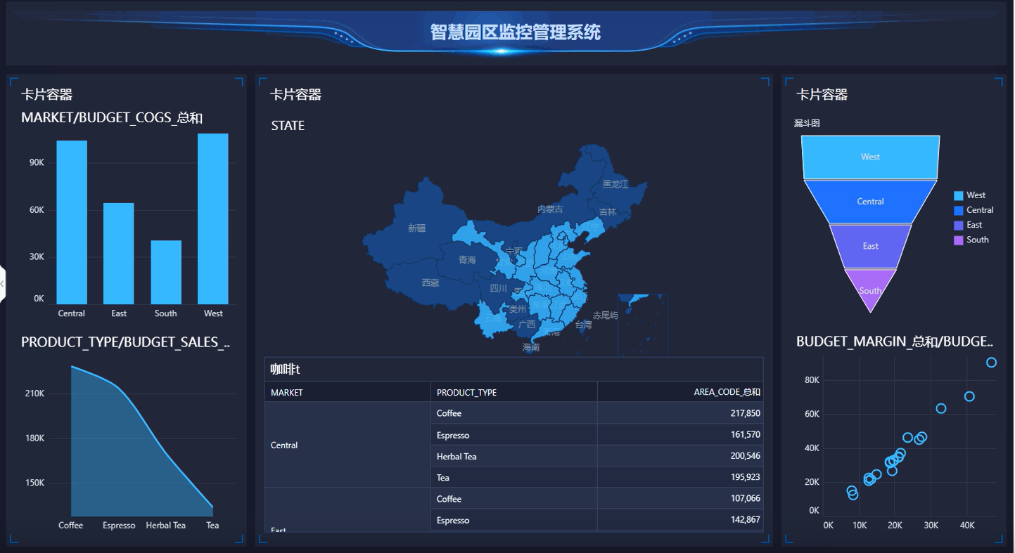 卡片容器组件可以使用在智能布局和自由布局的报告中,作为快速构建报告布局样式的容器组件。