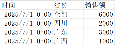 如果数据表同时包含了汇总和明细数据,如下图,提前计算好全部省份的销售额,这样可以减少计算压力。
