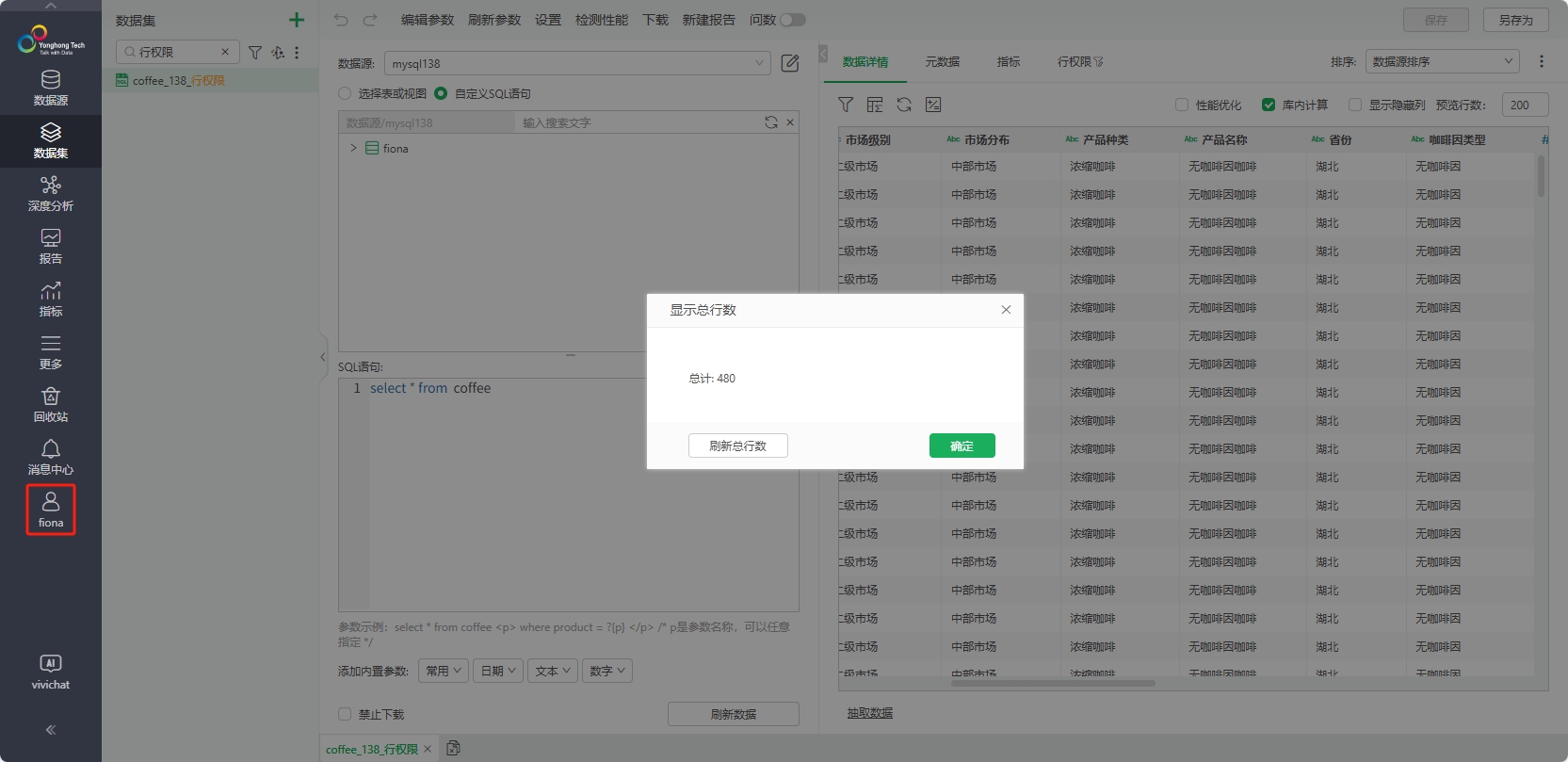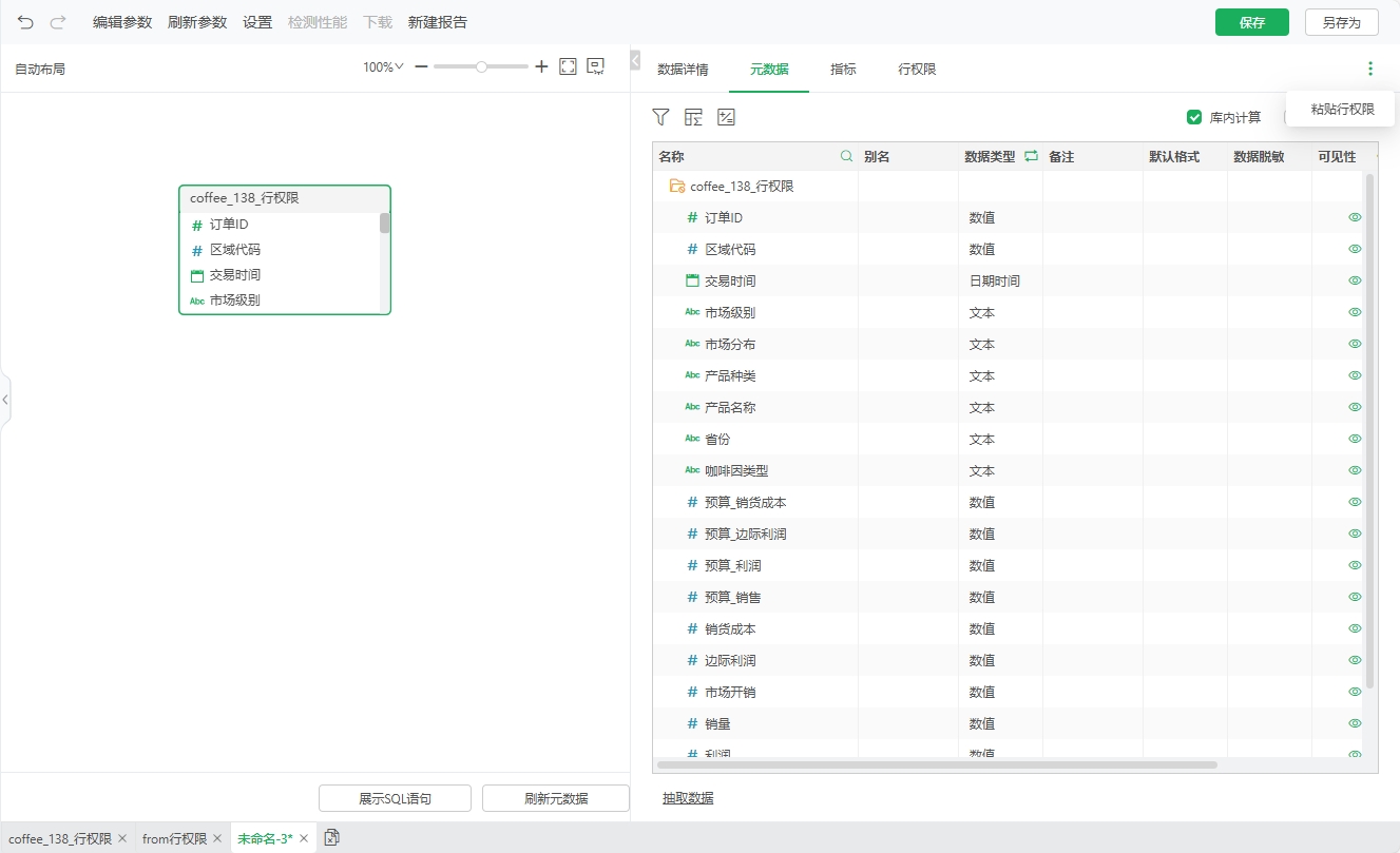 7)数据模型需要选择具体的节点设置行权限;自服务数据集需要选择数据集结果节点设置行权限。