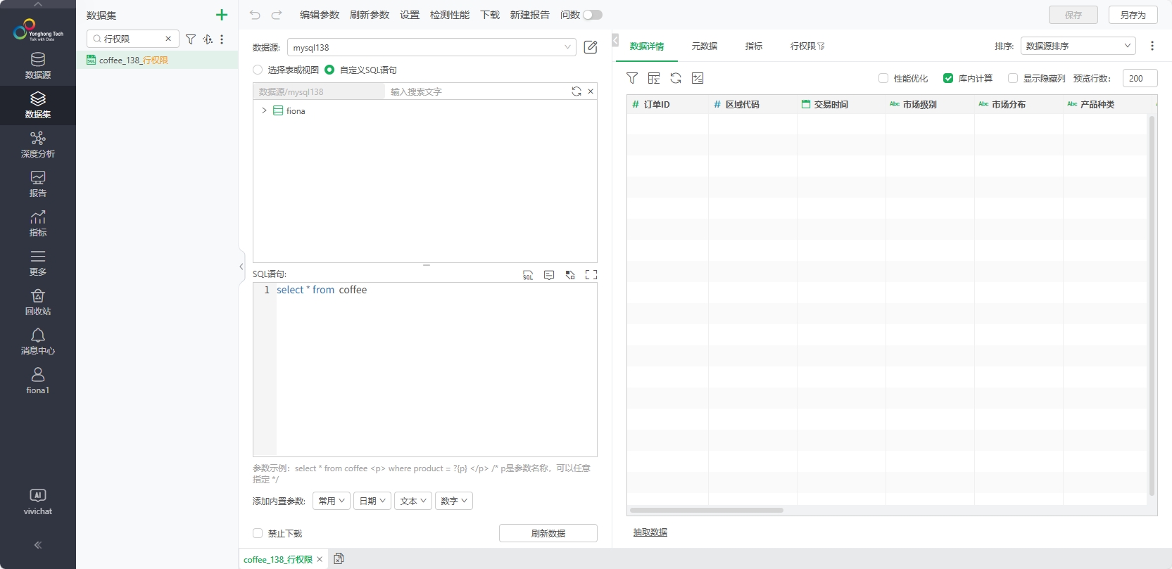 6)如果数据权限表查出来的数据为“空”数据时,也就是多源过滤或参数过滤时,返回的字段值或参数值为空时,返回空数据。参见本章应用举例里的fiona1用户查询数据。