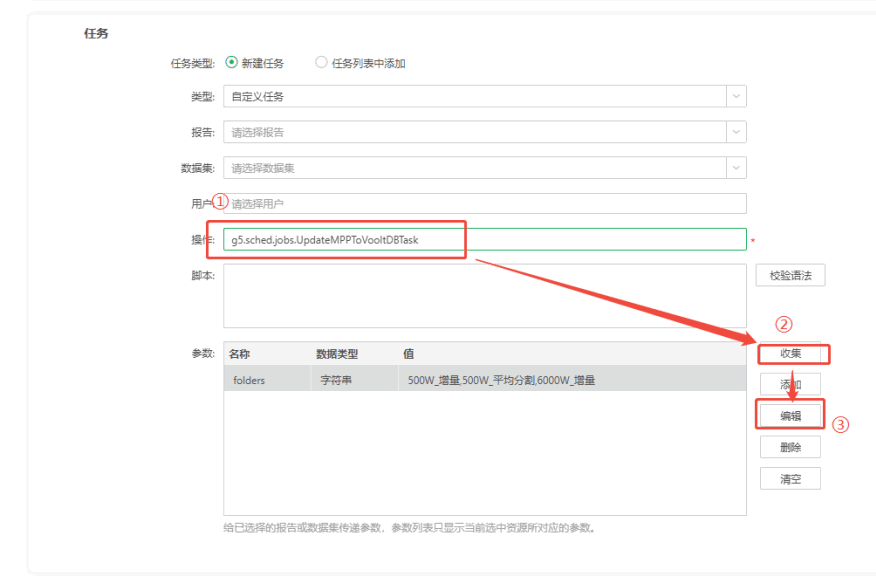 2)在操作框中输入g5.sched.jobs.MergeCloudFolderTask操作类。