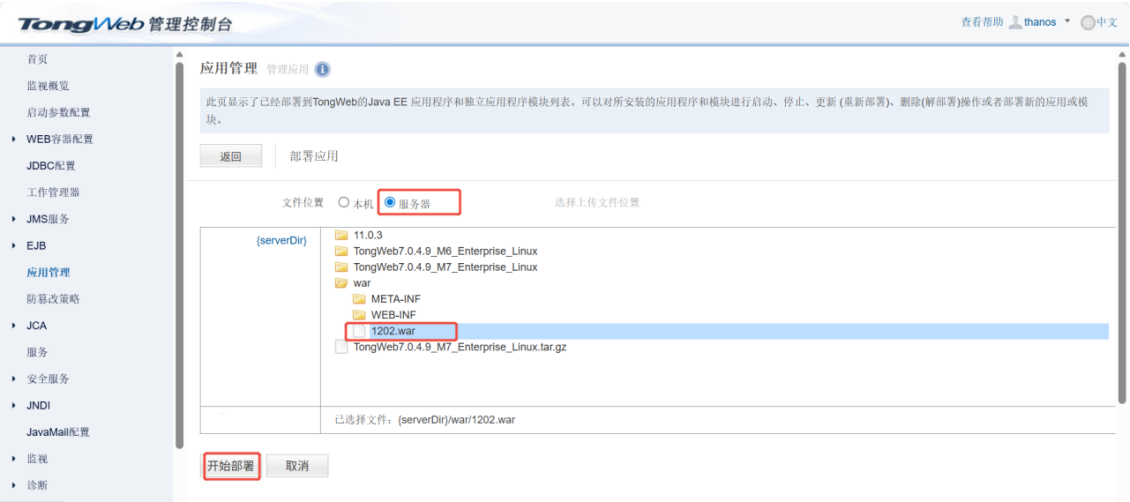 如果war包没在服务器上,先选择“本机”后,再上传war包。
