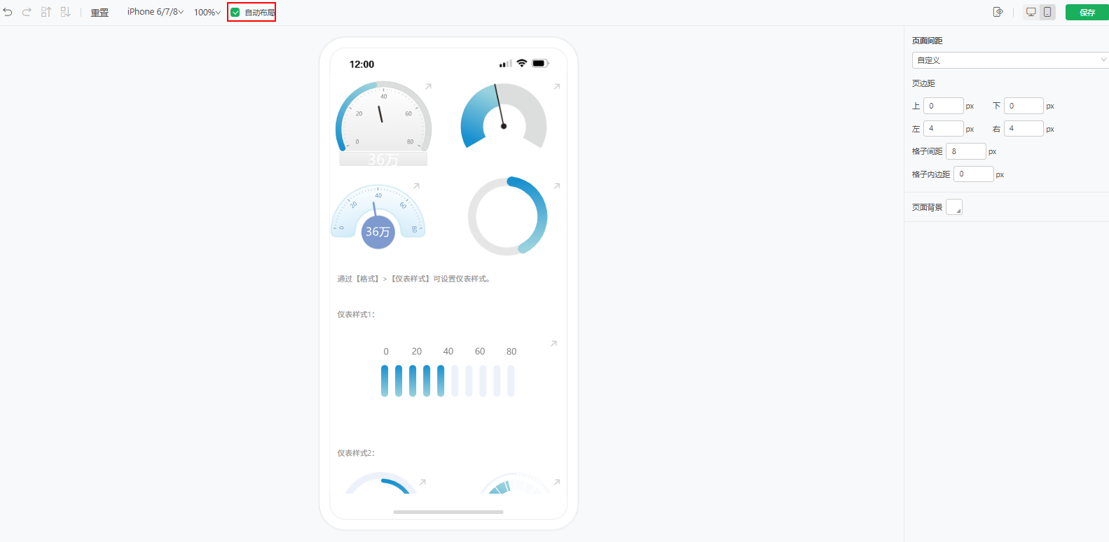报告的手机布局支持“自动布局”,智能实现移动端布局的优化,还可通过参数mobile.auto.layout来控制是否默认勾选,默认值是false,不勾选。